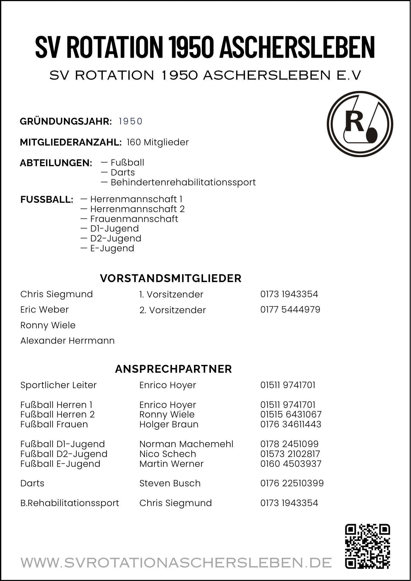 Seit der Gründung im Jahr 1950 hat sich der SV Rotation Aschersleben zu einem festen Bestandteil des sportlichen Lebens in Aschersleben entwickelt. Wir sind stolz auf die vielen Erfolge und unvergesslichen Momente, die wir gemeinsam erlebt haben.